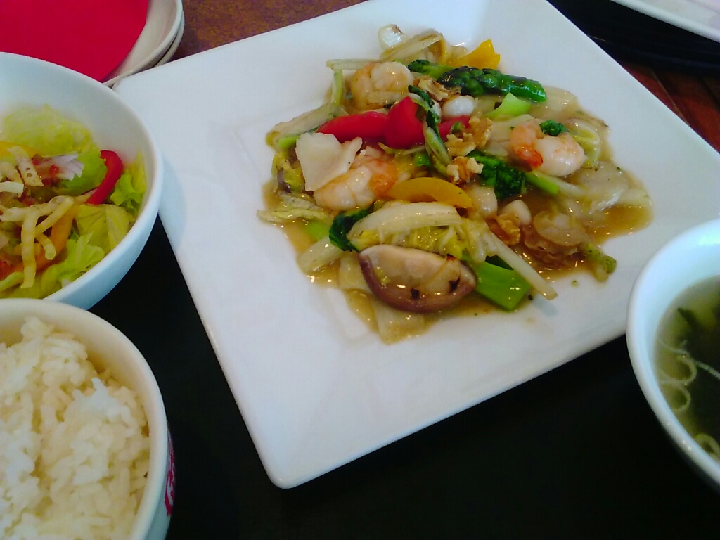 海の幸と野菜のあっさり塩炒めをチョイス。