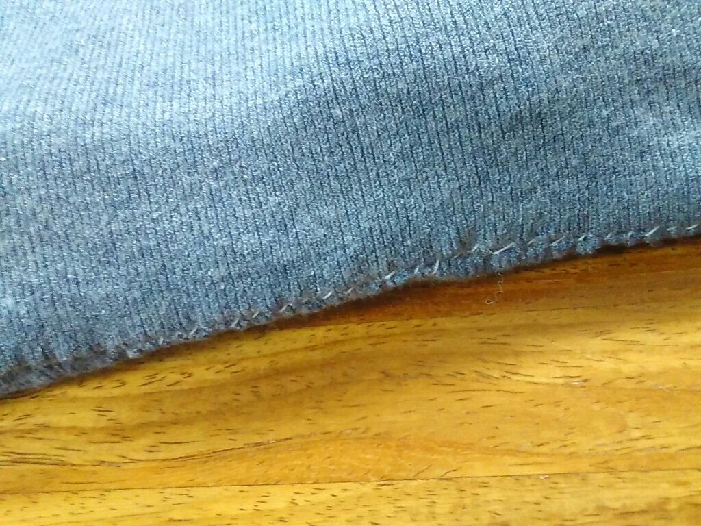 ③袖口と同じくらいの幅でまっすぐ縫って、余分なとこを更にカット。