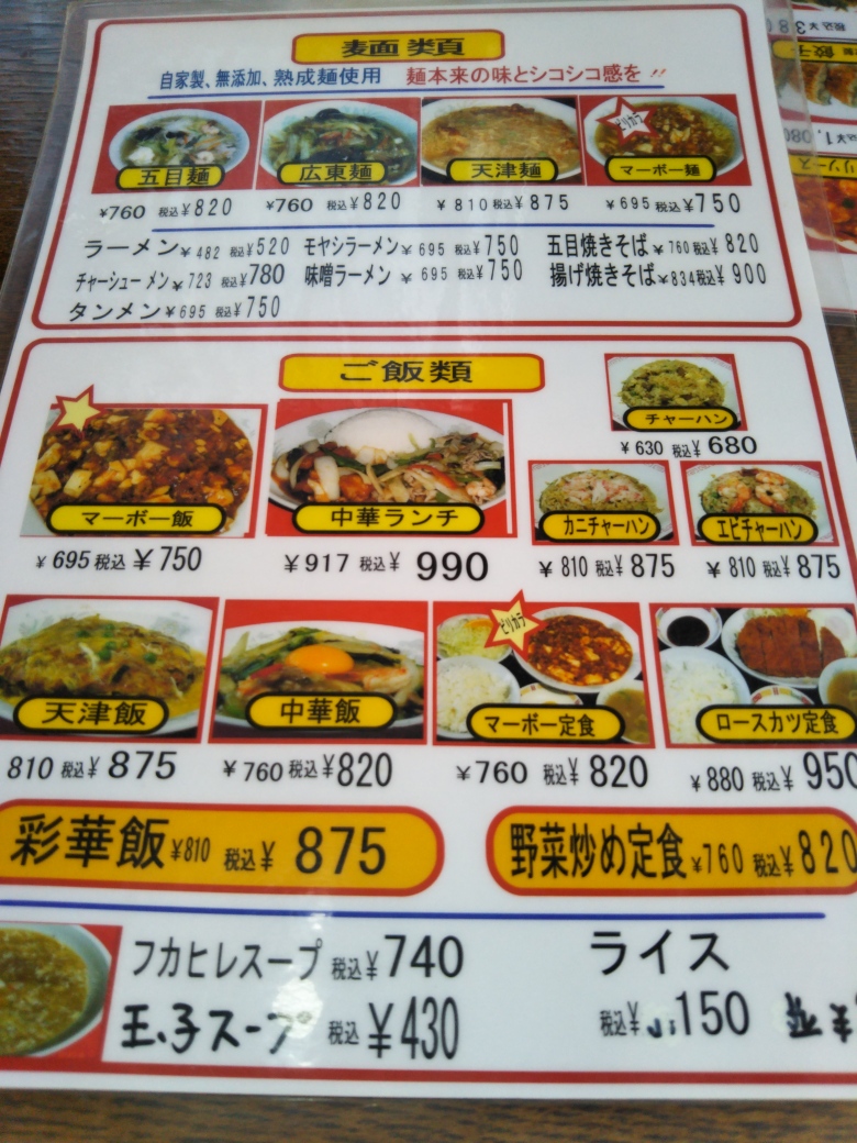今月初めの日曜日、お昼ご飯を彼と八戸市の彩華にていただく。