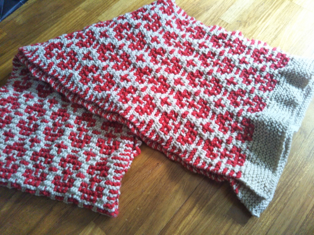これまた、幾何学模様のストールを作って余った糸を使用。
